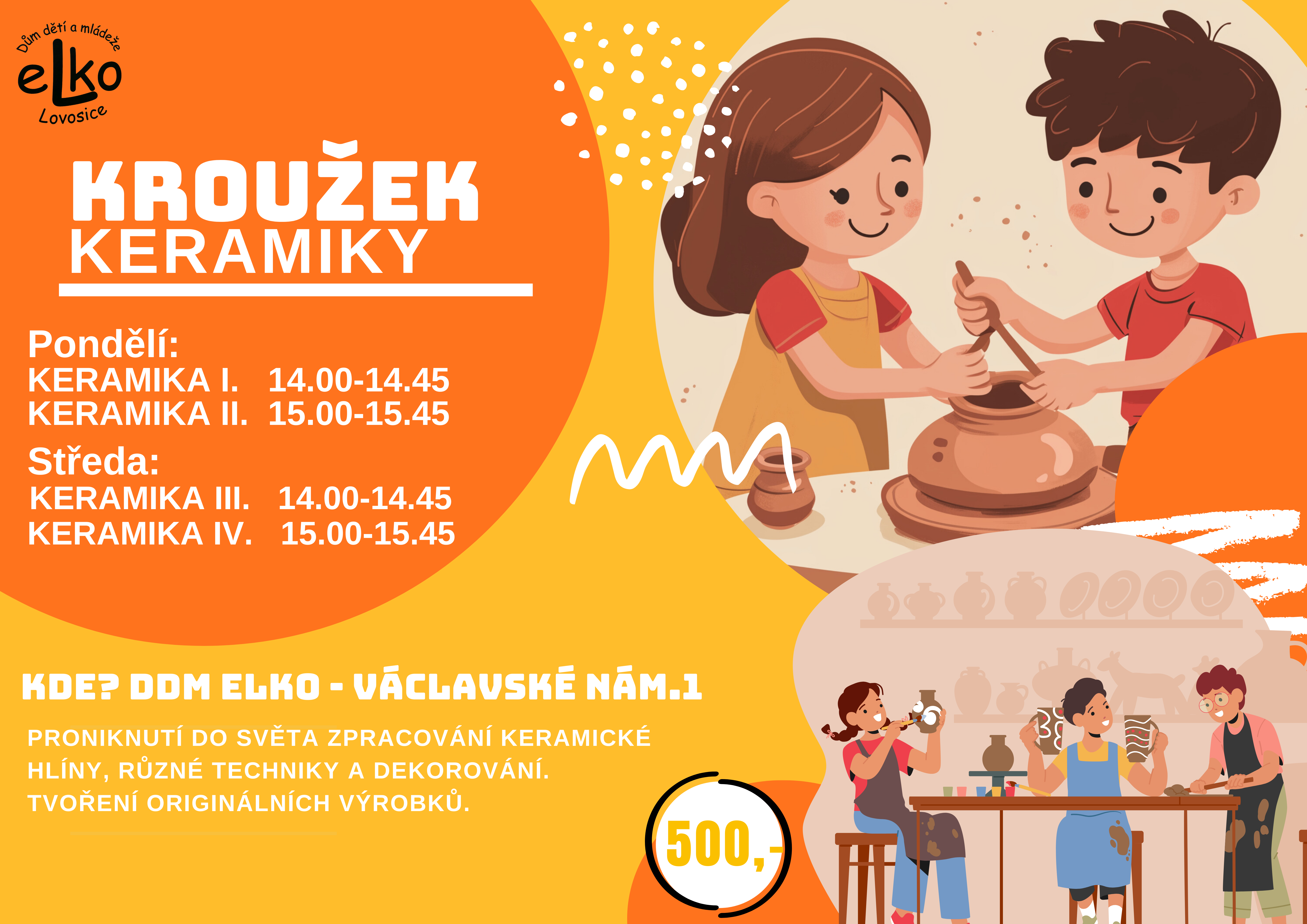Zájmové útvary 2025/2026 začínají v týdnu od 15.9.2025, keramika od 22.9.2025